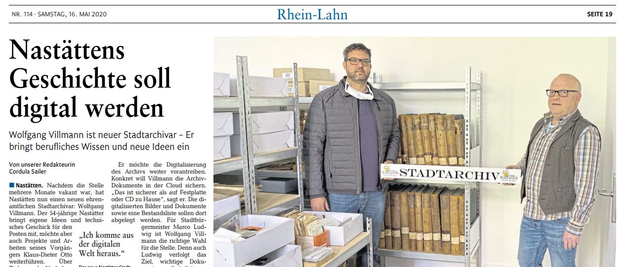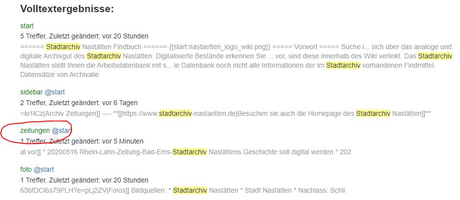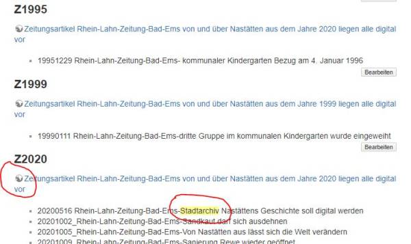 Sie suchen z.B. einen Zeitungsartikel zum Stadtarchiv. Nutzen sie zur Suche das Suchfeld der Wiki-Seite.