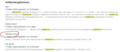 Sie suchen z.B. einen Zeitungsartikel zum Stadtarchiv. Nutzen sie zur Suche das Suchfeld der Wiki-Seite: