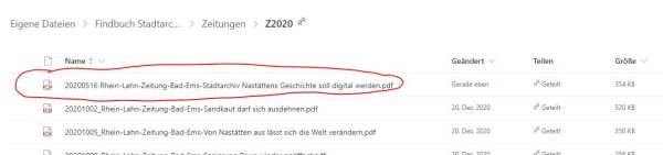 Unsere Archivdatenbank öffnet sich. In unserem Beispiel im Hauptordner Zeitungen. Scrollen sie zum Ordner Z2020 und öffnen sie den Ordner.