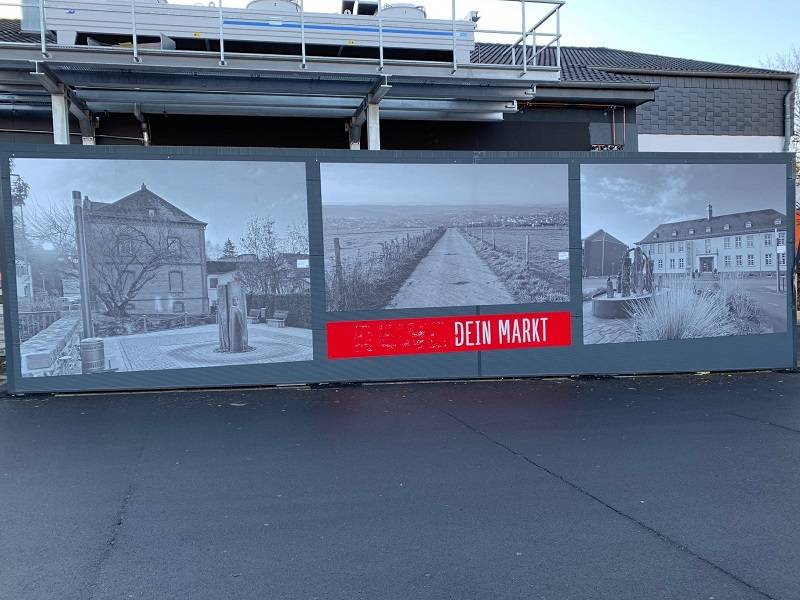 Im Rahmen des Umbaus des REWE Marktes am Marktplatz wurde im Oktober die Fassade im Eingangsbereich sowie an drei Türen im Innenbereich mit historischen Bildern aus dem Stadtarchiv gestaltet. Für die historischen Bilder gab es viel Zustimmung aus der Bevölkerung, daher bat uns REWE bzw. die zuständige Werbeagentur Josch um weitere Bilder. Diesmal sollten es jedoch Motive aus der Gegenwart in schwarz-weiß sein, da diese besser zur Optik des Gebäudes passen.