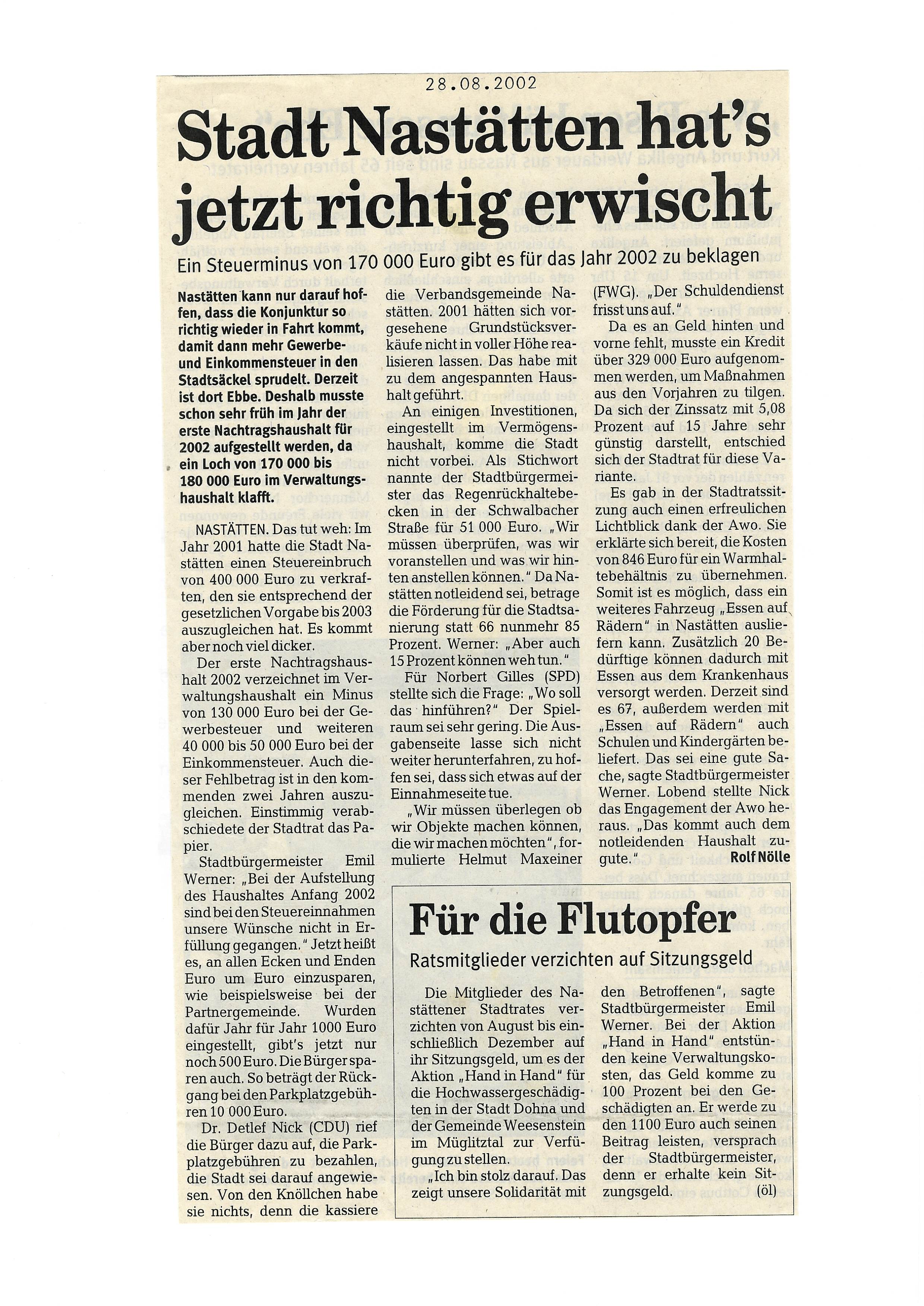 Zeitungsartikel Rhein-Lahn-Zeitung-Bad-Ems von und über Nastätten aus dem Jahre 2008.