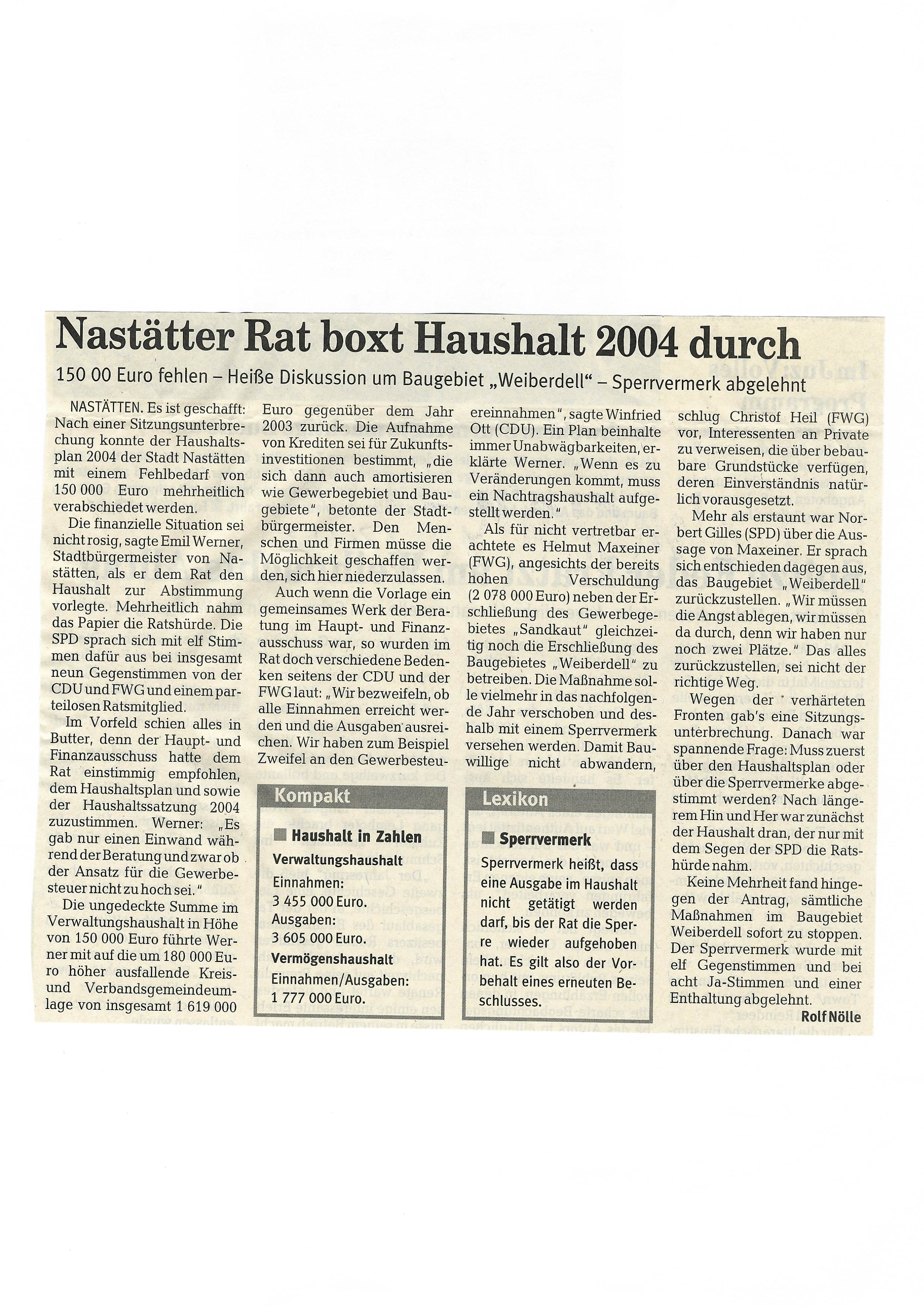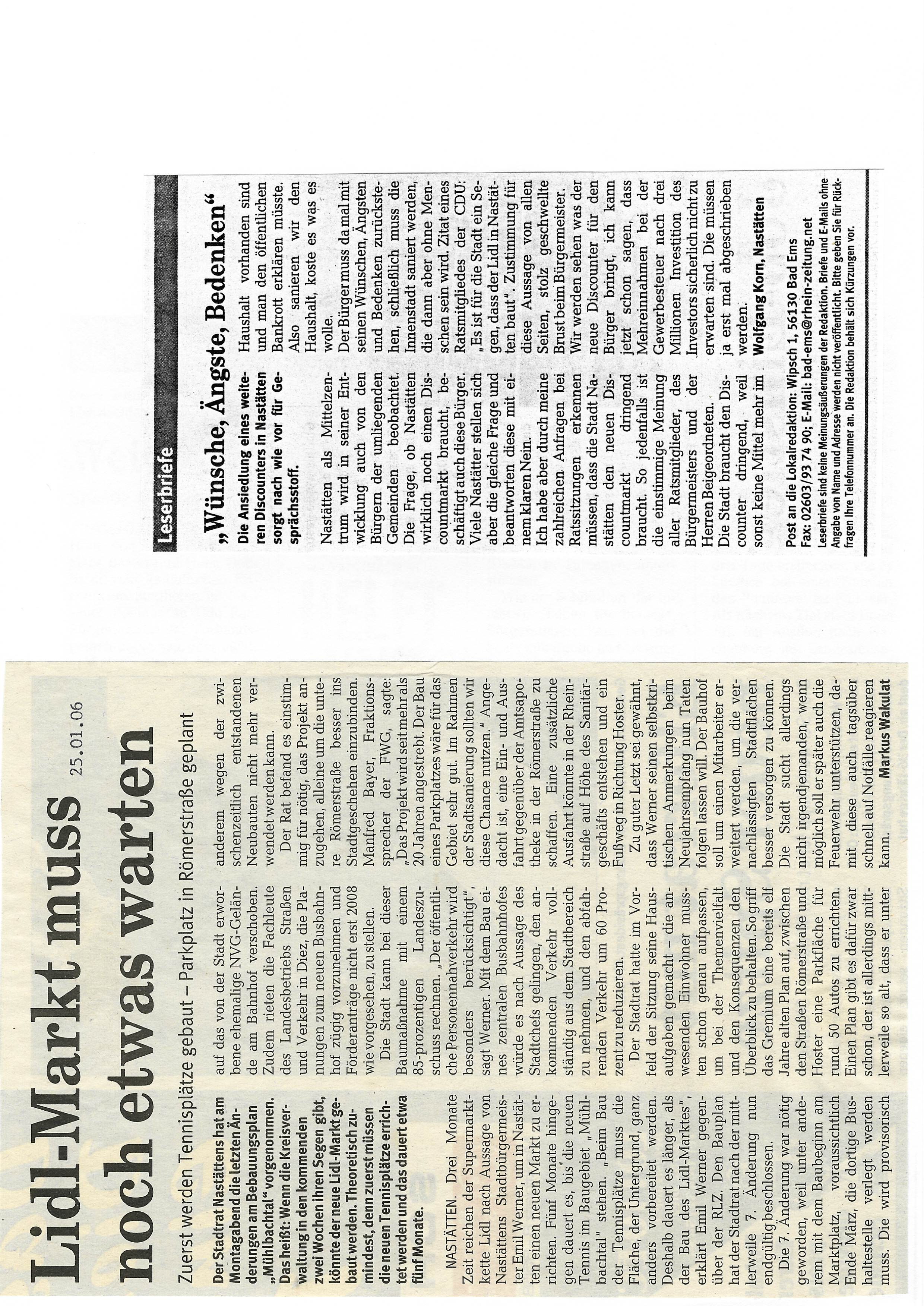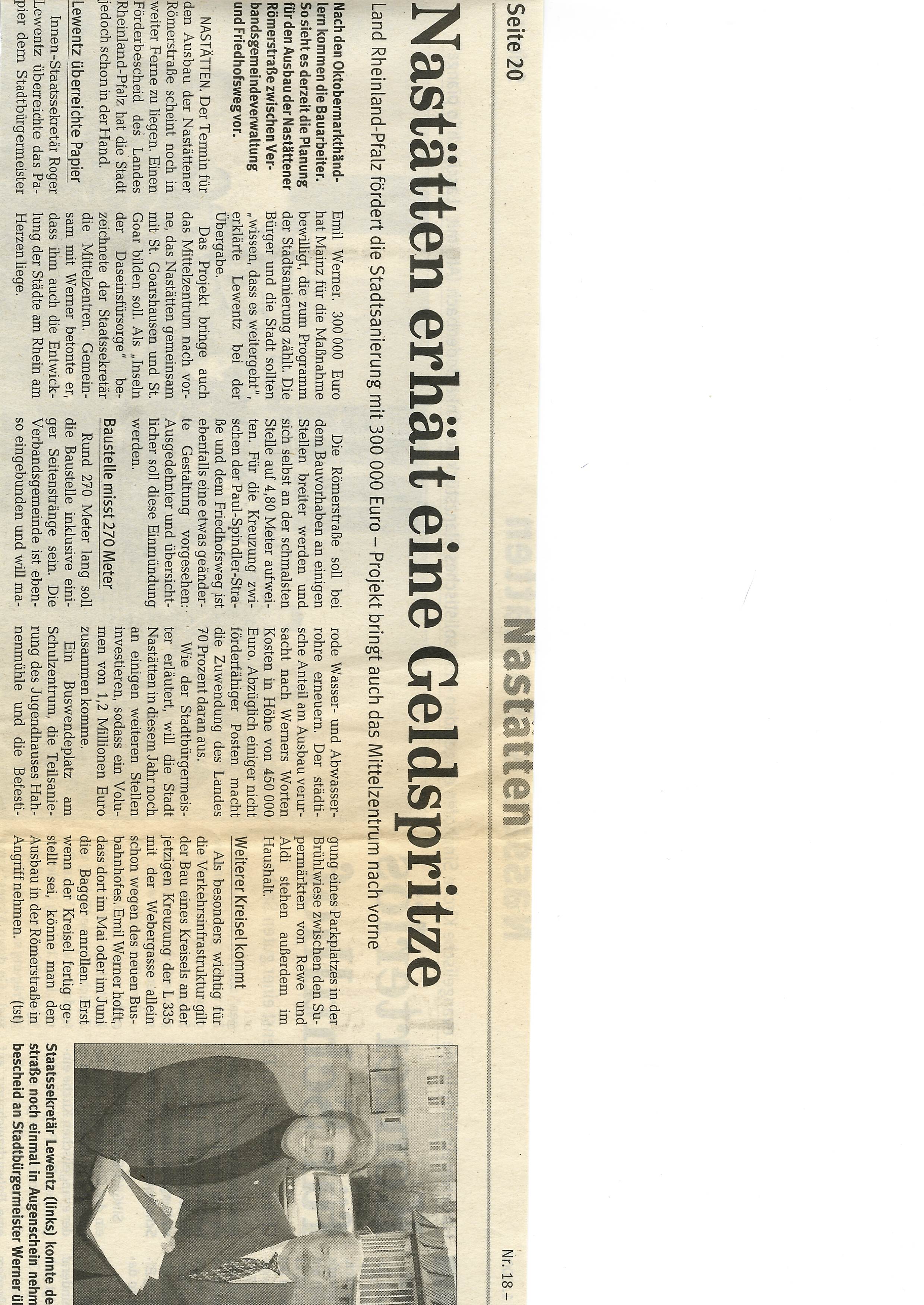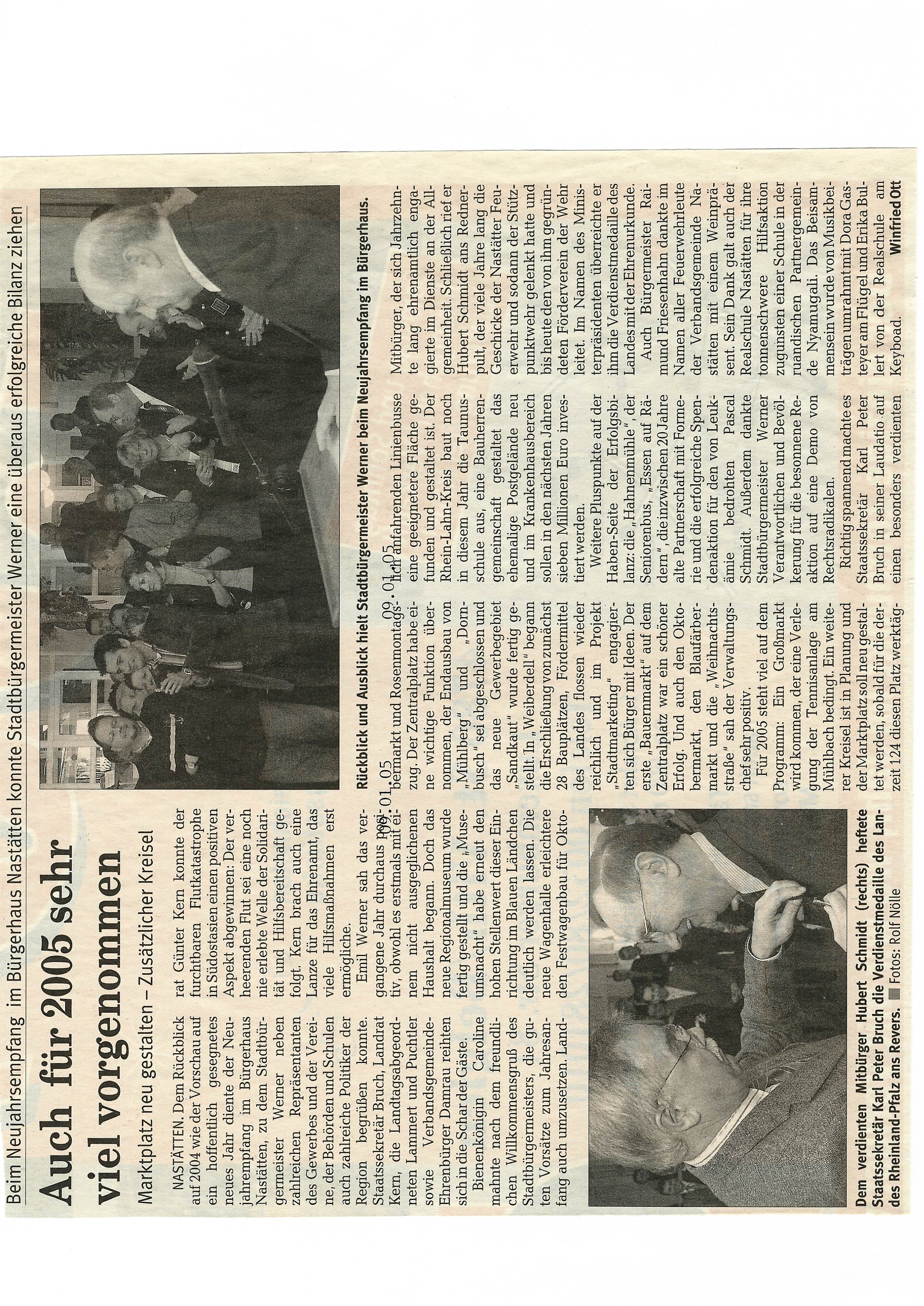 Zeitungsartikel Rhein-Lahn-Zeitung-Bad-Ems von und über Nastätten aus dem Jahre 2005.
