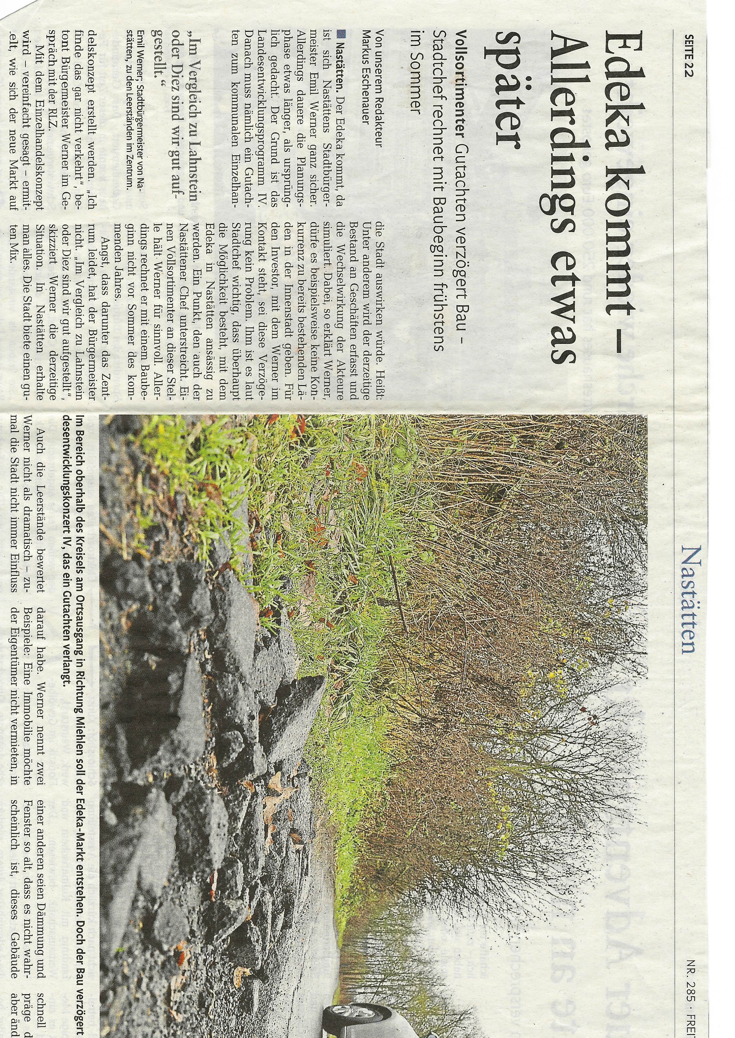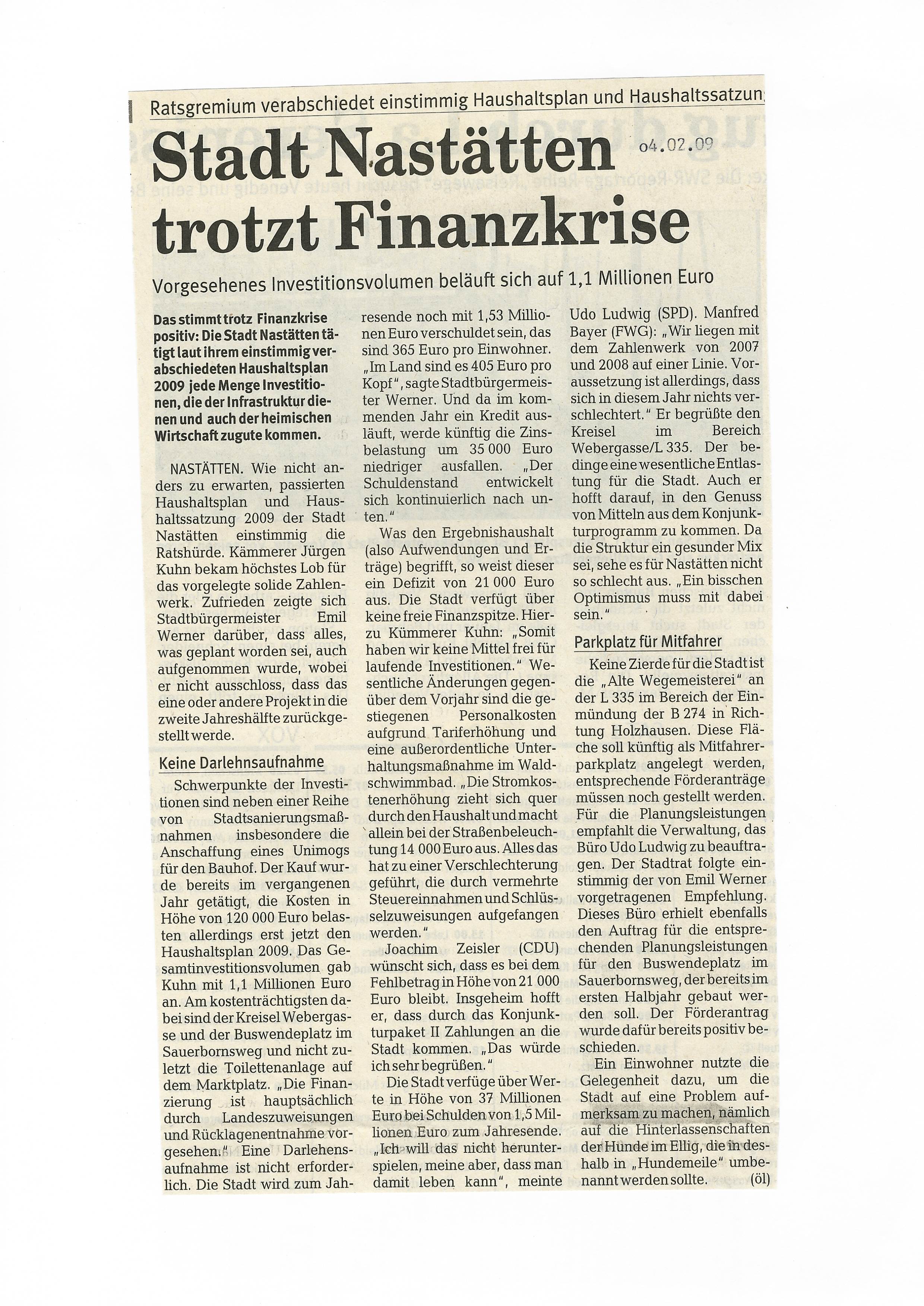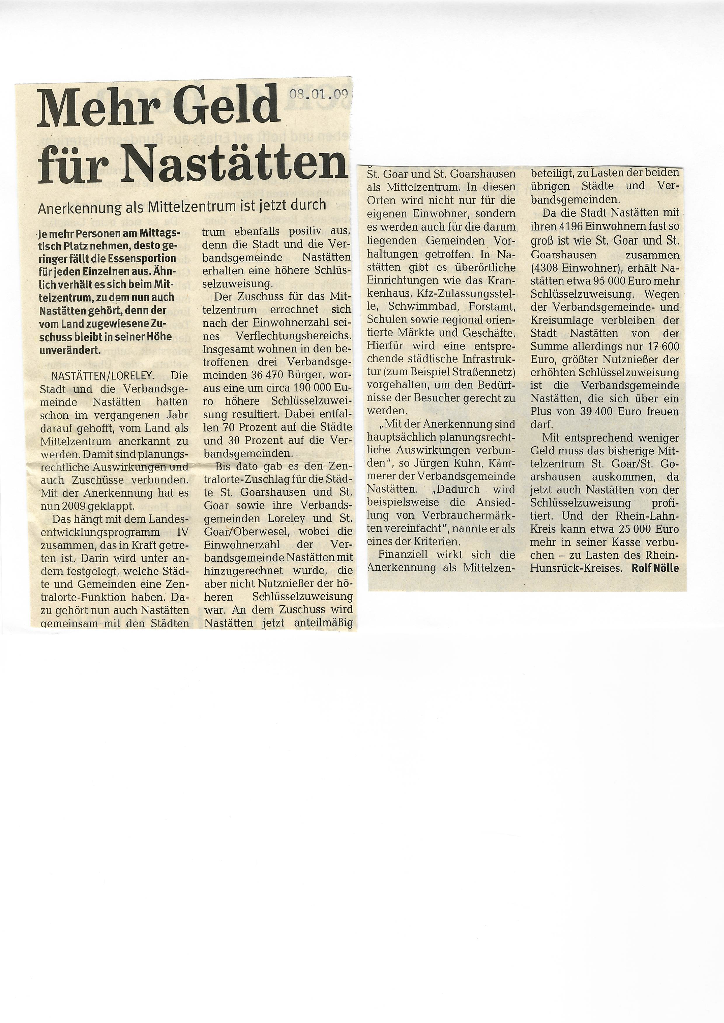 Zeitungsartikel Rhein-Lahn-Zeitung-Bad-Ems von und über Nastätten aus dem Jahre 2009.