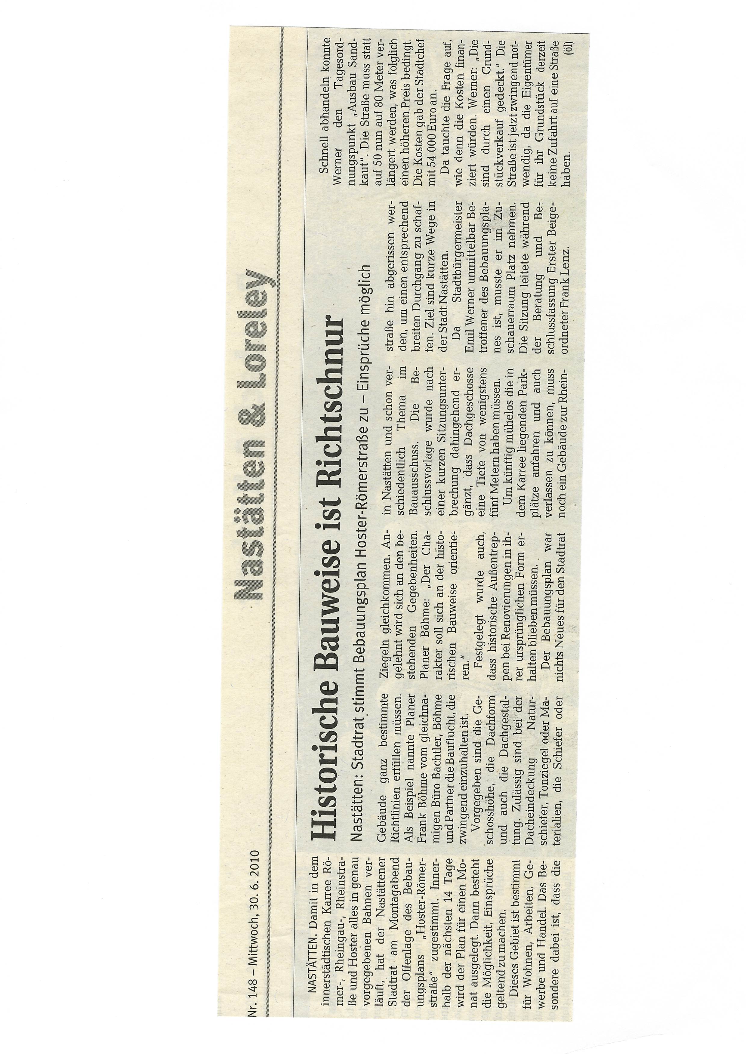 Zeitungsartikel Rhein-Lahn-Zeitung-Bad-Ems von und über Nastätten aus dem Jahre 2010.