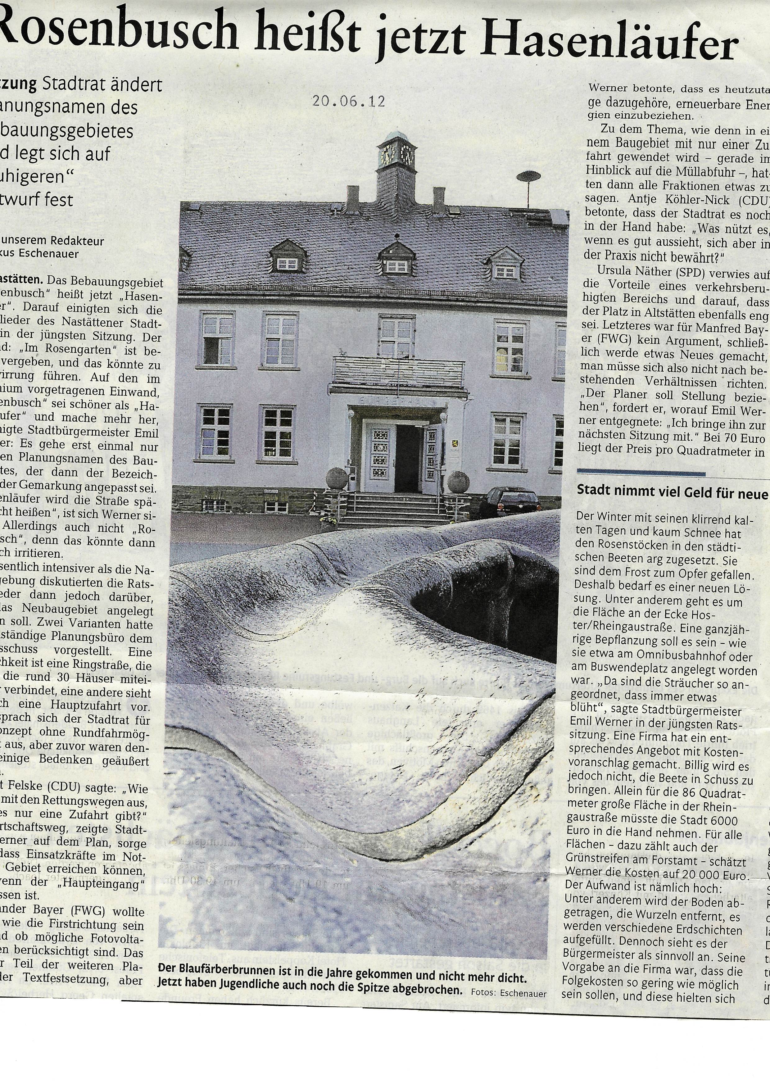 Zeitungsartikel Rhein-Lahn-Zeitung-Bad-Ems von und über Nastätten aus dem Jahre 2012.