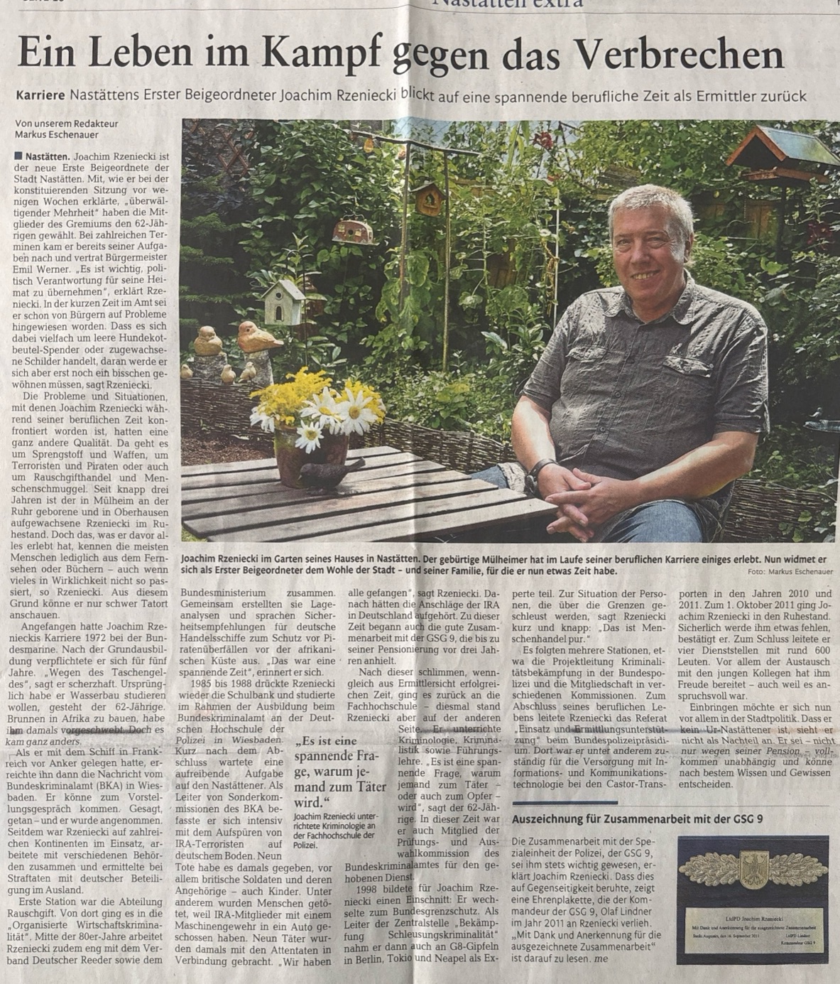 Zeitungsartikel Rhein-Lahn-Zeitung-Bad-Ems von und über Nastätten aus dem Jahre 2025.