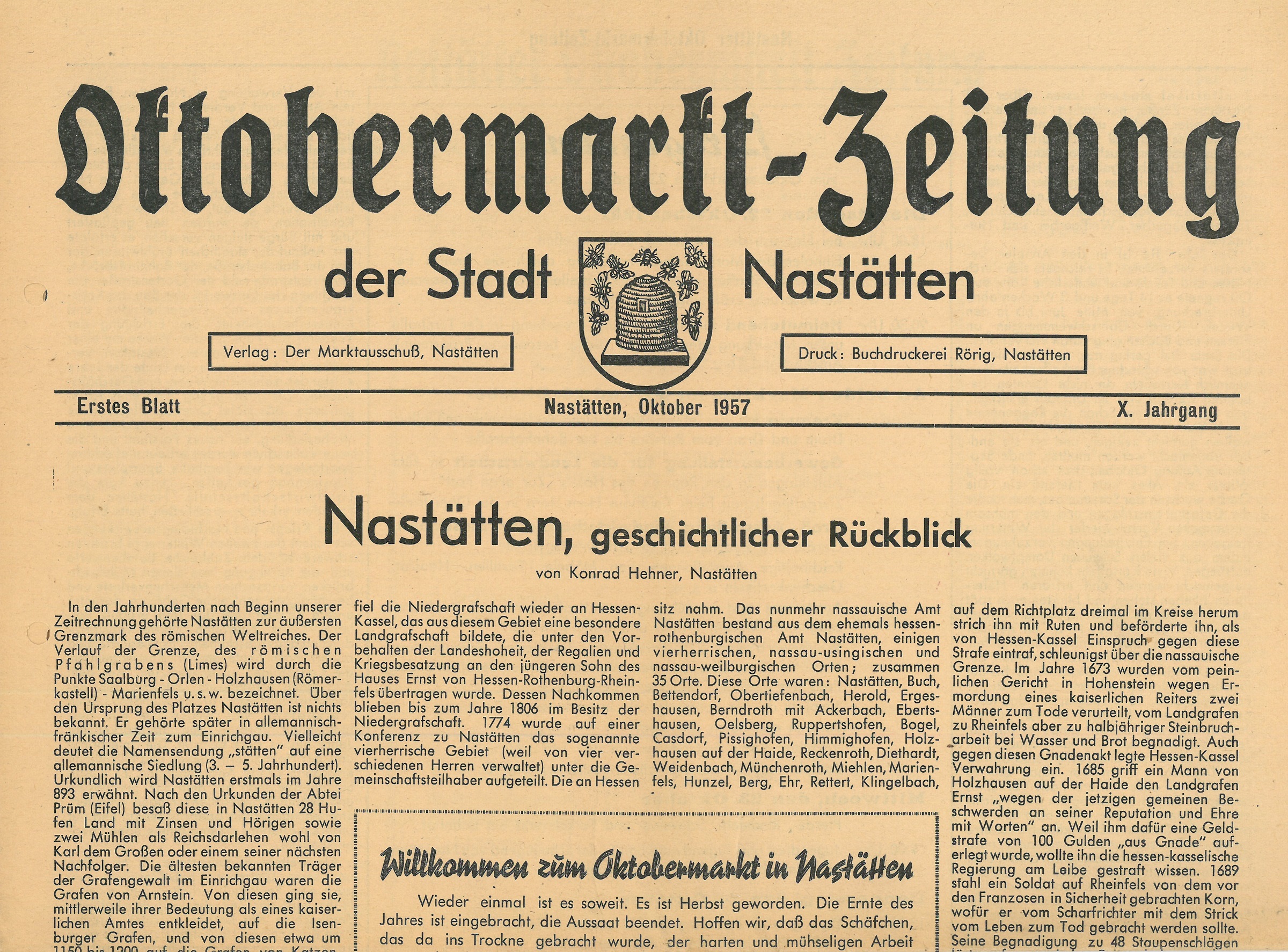 Oktobermarktzeitung 1957 - Artikel der Titelseite